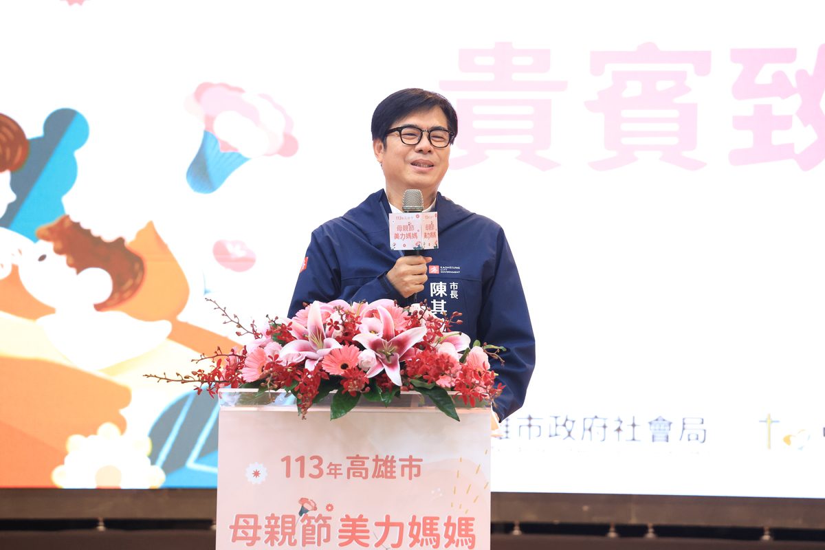陳其邁也提到,每個人出生起,媽媽就伴隨著我們成長,是給予我們最多教育、最多愛的角色,是上帝的奇異恩典。而今天在場美力媽媽們,包含新住民、原住民、父代母職等,都讓整個家庭受到更好照顧。
