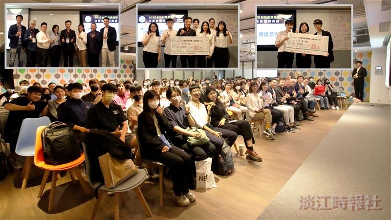 淡江大學2023年創新創意競賽決賽暨頒獎典禮,5月15日在守謙國際會議中心舉行,由入圍創新組的13隊及創業組的10隊,針對計畫主題進行簡報與答詢,經過一番精彩呈現,最終評審結果,創新組由「唱跳霹靂戰隊」奪冠,「永續賦新」與「雛鳥離巢高高飛」分獲二、三名;創業組則由「bird sight」、「EntRepreneur」與「鴿鷲財」搶下前三,除獲頒獎金與獎狀,之後將由研發處輔導參與或爭取政府相關競賽與計畫。