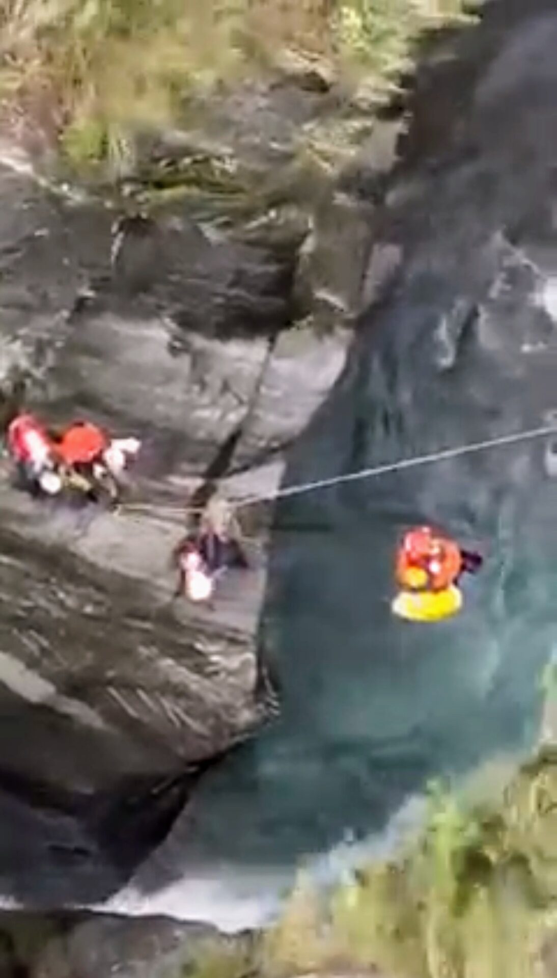 經空拍機搜尋後,發現5人被困在七連瀑布的第3瀑布,他們無法上下行動,各自以腰帶釘山壁度過漫長的一夜。