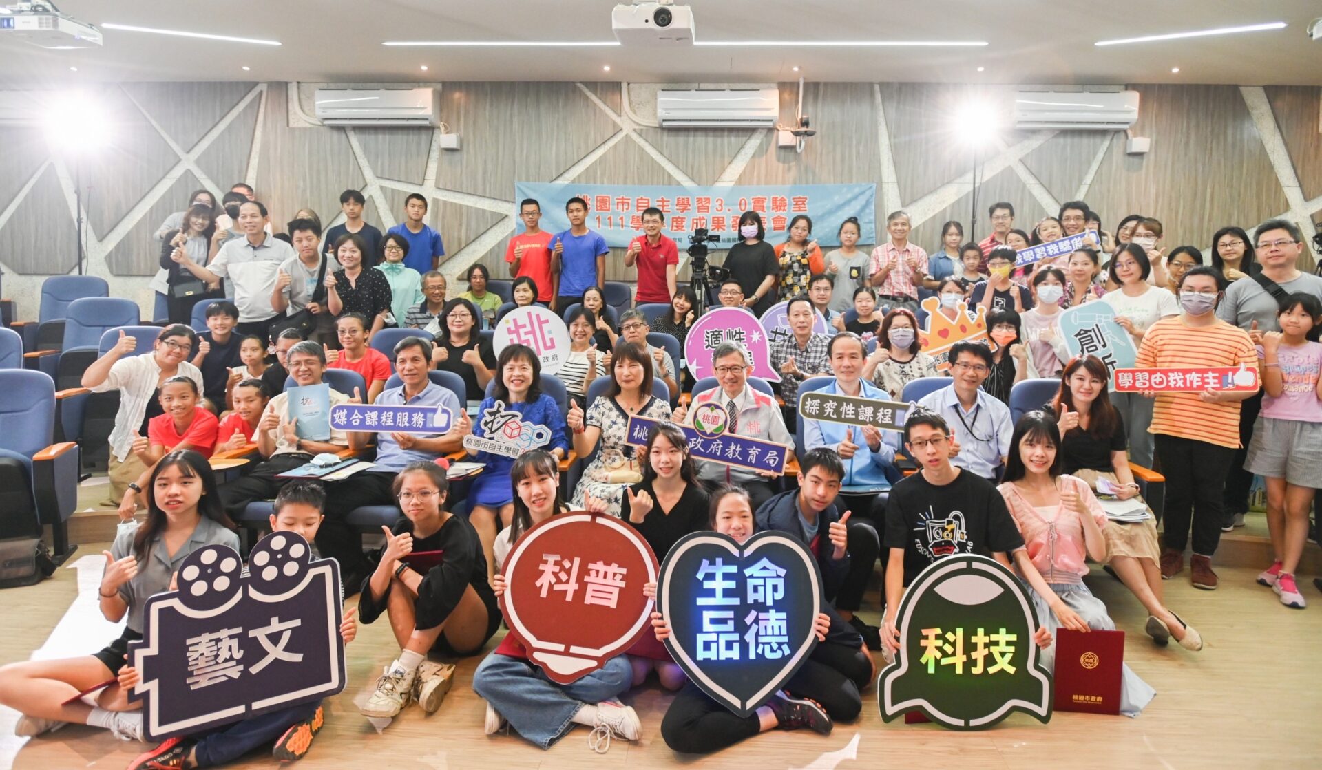 今日包括市府教育局長劉仲成、桃園國中校長蘇品如、台北市立大學特殊教育學系助理教授暨桃園市自主學習3.0實驗室計畫主持人吳淑敏等均一同出席成果發表會。