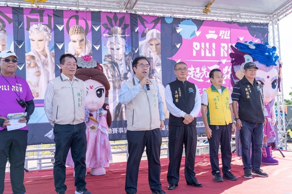 《霹靂布袋戲》官方推出「超先天路跑」的路跑嘉年華,吸引近2000名愛好霹靂布袋戲的跑友於台南正統鹿耳門聖母廟2早上8點20分鳴槍起跑,台南市長黃偉哲、體育局局長陳良乾、立法委員陳亭妃及廟方主委王增榮、總幹事蔡瑞源蒞臨現場為選手加油打氣。黃偉哲市長表示,在霹靂英雄的帶領下,戲迷朋友們可以走出健康、走出快樂,順利完成賽事,並藉機呼籲市民朋友,目前台南登革熱已經超過100例,要注意環境衛生,並勤打掃、消滅病媒蚊,趕走登革熱!