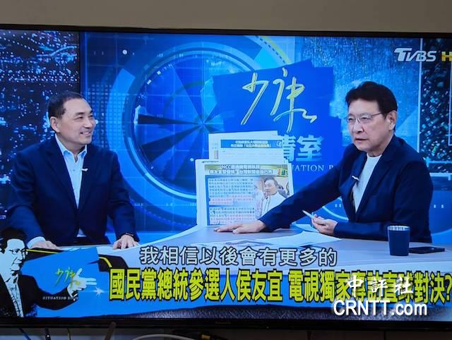 侯友宜3日下午赴《TVBS》電視台,接受“少康戰情室”主持人趙少康專訪,訪問內容於3日晚間播出。
