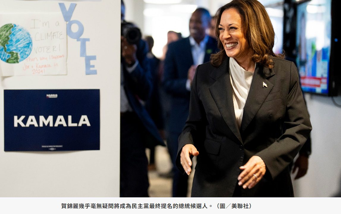 美國總統拜登(Joe Biden)於美東時間21日宣布退選,並表態支持現任副總統賀錦麗(Kamala Harris)迎戰共和黨總統候選人川普(Donald Trump)。如今,前眾議院議長裴洛西(Nancy Pelosi)、美國前總統柯林頓(Bill Clinton),以及美國最大工會組織「勞聯-產聯」(AFL-CIO)也發聲支持賀錦麗,意味著這位59歲的前加州州檢察長幾乎毫無疑問將成為民主黨最終提名的總統候選人。