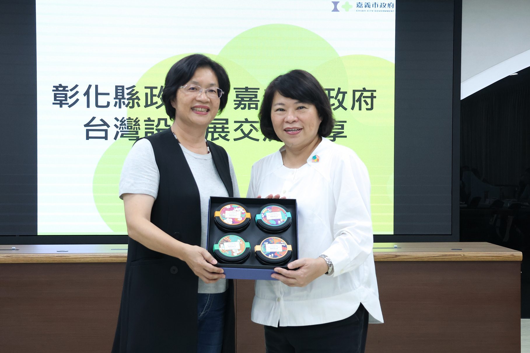 市長黃敏惠表示,雖然這是嘉市府與彰化縣府團隊首次面對面的相互交流,卻早在中台灣區域治理平台與王惠美縣長的互動間,感受到王惠美縣長領導縣政的積極與用心。黃敏惠市長恭喜彰化縣取得2025台灣設計展主辦權,並感謝縣府團隊對嘉義市舉辦2021台灣設計展的肯定,也預祝2025台灣設計展圓滿成功。