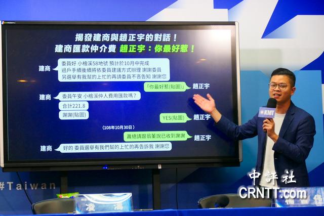 國民黨中央今日舉辦“建商匯仲介費 趙正宇Line:你最好惹 居住正義 賴清德對‘牽鉤仔’視而不見?”記者會,出席者包括國民黨桃園市議員凌濤、國民黨發言人楊智伃、台中市第四選區(西屯、南屯)立委參選人廖偉翔,廖也是數據科技公司創辦人、前胡志強辦公室主任