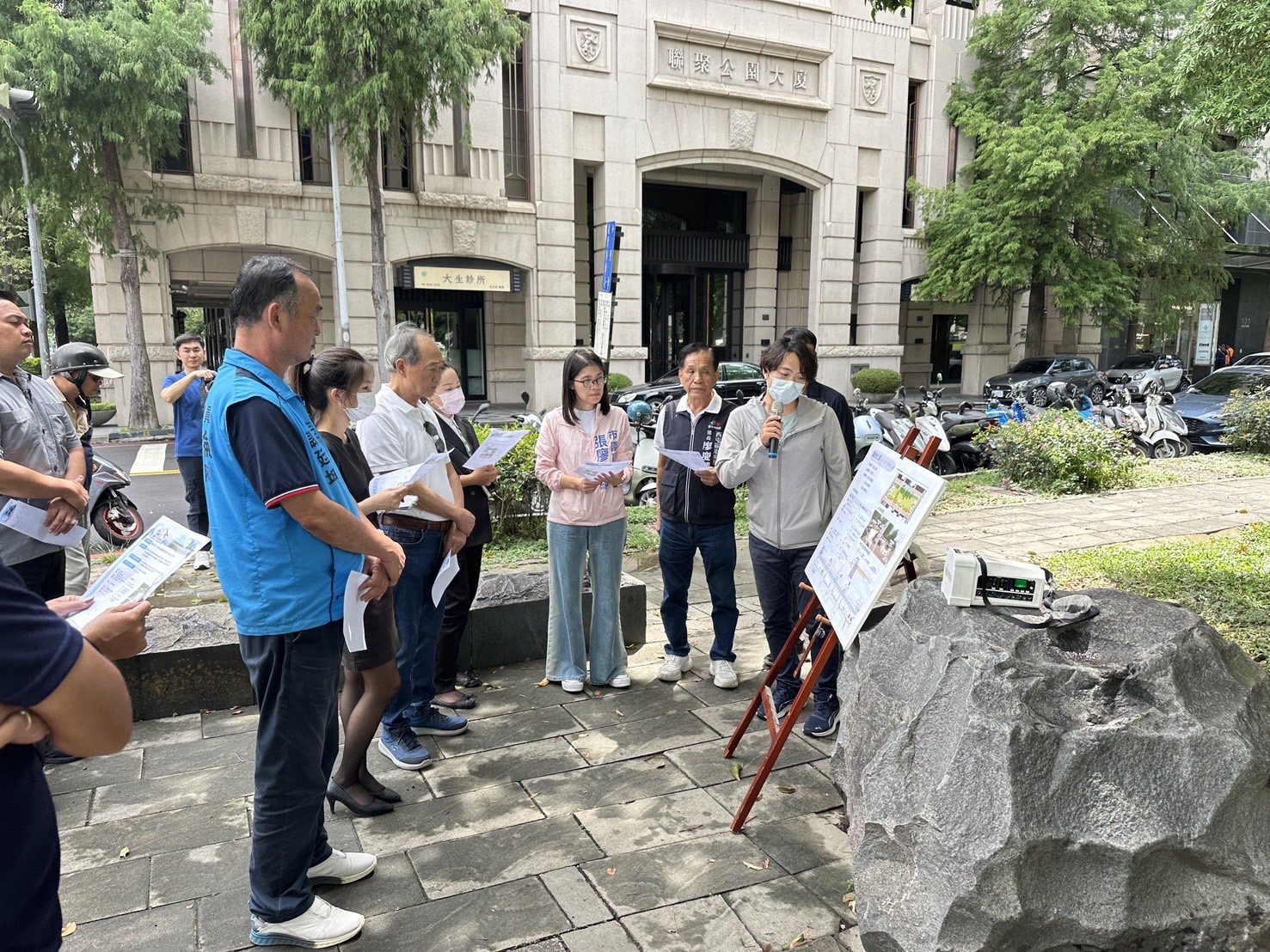 陳局長進一步說明,此次進行夏綠地公園植栽改善工程,因里長及地方民眾希望能將黑板樹換植,市府傾聽民意需求,配合公園內植栽生長狀況整體考量,將臨路側黑板樹予以換植,改為種植杜英等原生喬木及搭配種植藍月立鶴花、沿階草等灌木,同時拓寬人行道,並將分階段施工,透過植栽的手法營造帶狀綠色意象銜接國家歌劇院,提供民眾舒適、安全的通行環境。