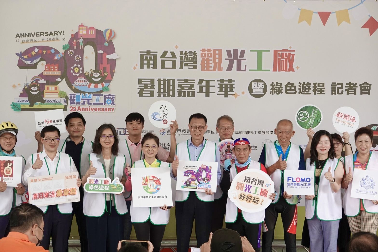 為慶祝觀光工廠20週年,熱情的高雄將於7月22日至7月23日為期兩天,假高雄駁二大義紅磚區舉辦一場盛大的「2023南台灣觀光工廠嘉年華」活動。觀光工廠20週年是全台親子旅遊盛事,為活動熱身,觀光工廠特別號召50位民眾騎自行車暢遊觀光工廠,全長近110公里,期待透過活動辦理,向更多人展現觀光工廠特色與在地魅力,同時也為大家呈現一場極具盛夏氛圍和豐富多彩的嘉年華。