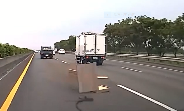 【記者爆料網 周庭慶/嘉義報導】民眾PO網一段影片,日前駕車經過國一北上272公里路段,前方1輛小貨車未覆蓋帆布載運1個木桌子,結果木桌子從車上掉落!還好開車的丈夫反應敏捷有閃過,隨即通報國道1968並向國道警察線上檢舉。