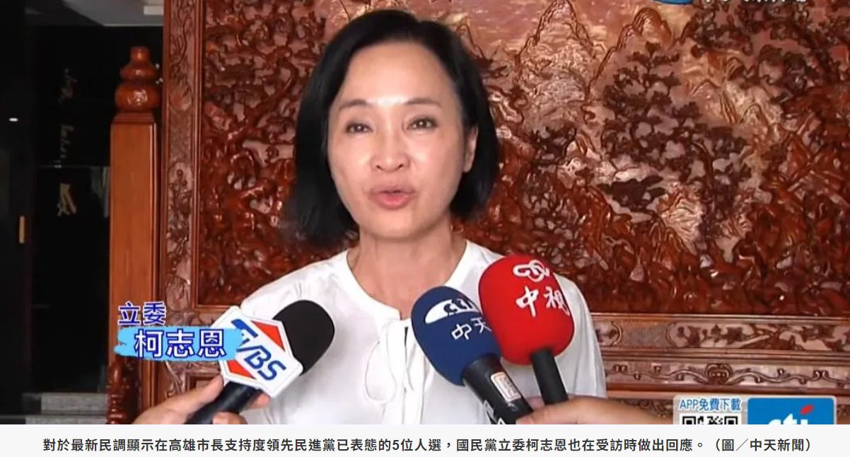 高雄市長陳其邁將於2026年卸任,《TVBS》今(11)日公布一份「2026高雄市長可能人選民調」,結果顯示,國民黨立委柯志恩的支持度,均勝過民進黨5位已表態的人選。對此,柯志恩今日受訪時回應,「我一貫態度都是參考就好」,而且她認為這是給她一個警惕,這次獲得4成左右支持度,和上次選高雄市長得票率差不多,這代表沒有太大的進步。