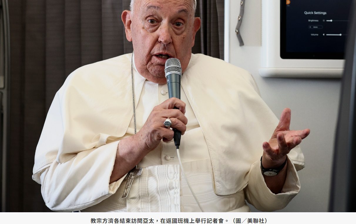 羅馬天主教教宗方濟各(Pope Francis)13日結束亞太4國的訪問行程。在返國機上被問及即將在11月登場的美國總統大選時,方濟各說,川普反移民和賀錦麗支持墮胎權都違背生命權,呼籲天主教選民「兩害相權取其輕」。
