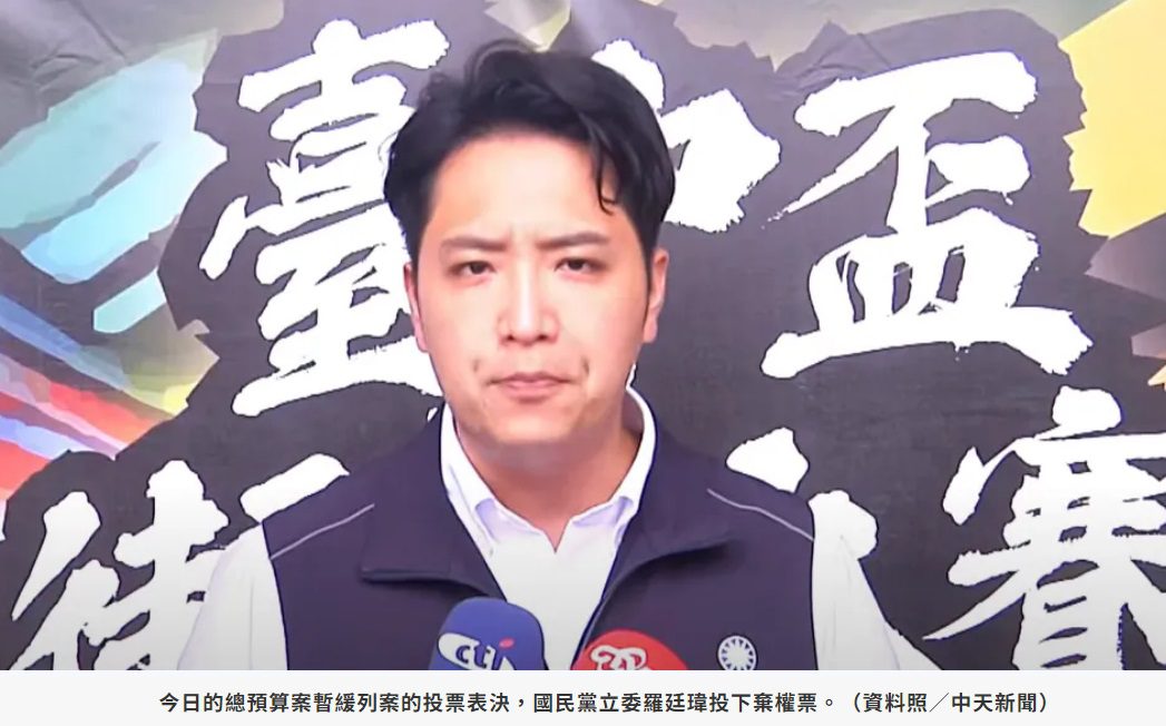 今日的總預算案暫緩列案的投票表決,共出席立委17人,其中贊成9人、反對7人,令人意外的是,國民黨立委羅廷瑋投的是棄權而非贊成。事後了解,羅廷瑋事前有向黨團報備,由於民進黨立委沈伯洋也沒出席程序委員會,在票數有優勢情況下,藍營黨團並未強制投贊成,所以羅廷瑋不算跑票。不過有藍營人士憂心,羅廷瑋沒和黨團站在一起,接下來恐會被當破口,被民進黨拿來操作。