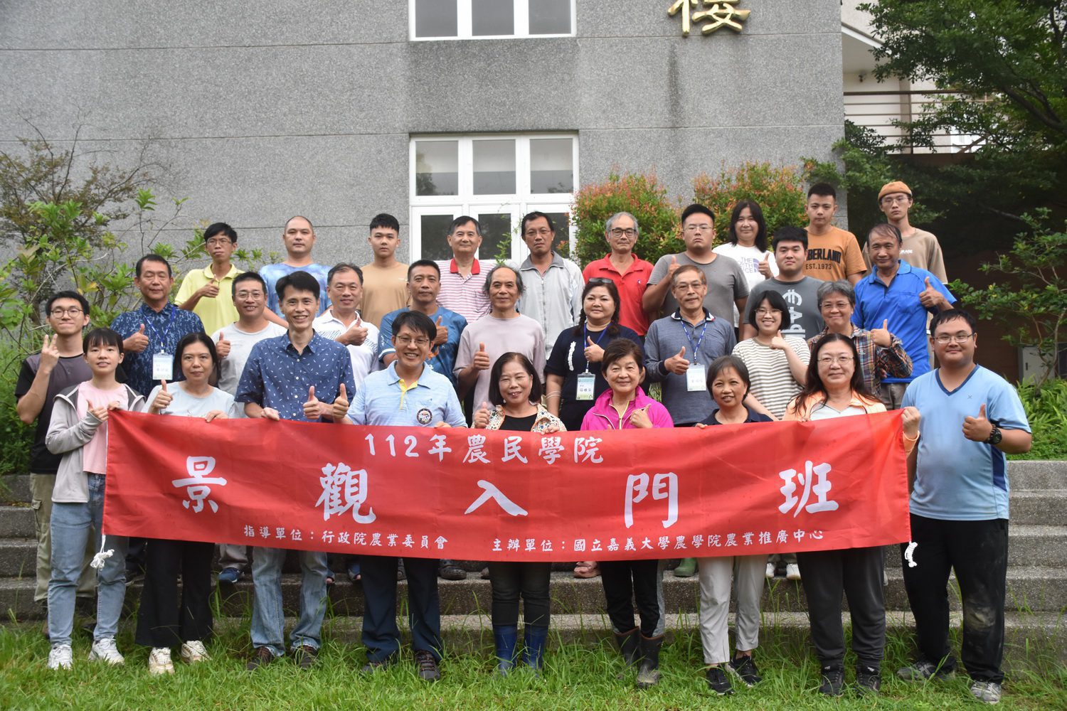 嘉義大學農學院農業推廣中心與景觀學系合作,7月25日至27日首度辧理「景觀入門班」初階選修之農民學院課程,由農推中心主任林明瑩與景觀學系主任陳美智共同主持開訓典禮。28位學員分別遠自花蓮新城、新北三重等地前來,課程期間教授豐富的景觀領域理論及實務知識,學員個個滿載而歸,不畏杜蘇芮颱風27日來襲順利完成結訓。