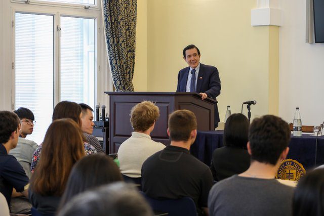 正在歐洲訪問的前總統馬英九,27日上午於聖母大學倫敦分院以“台灣應追求和平,避免兩岸戰爭”為題發表演說,他提到自己3月訪問大陸後,促成了三種連結,包括祭祖的文化連結,兩岸的歷史連結,到青年交流的情感連結,有效降低了兩岸這七年多來的緊張與對立,也讓國際間的朋友注意到,兩岸不是一定要兵戎相見,也有透過交往達成和平的方式。