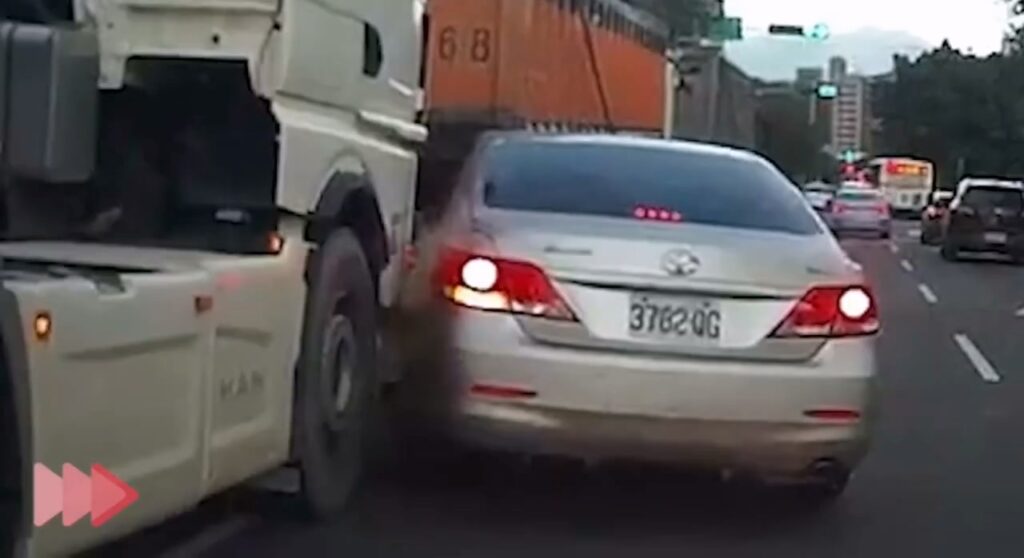 網友在爆料公社分享影片,並酸說「誰給你的勇氣」。影片中一輛TOYOTA想切到內線道,疑似砂石車視線死角,導致TOYOTA被兩輛砂石車夾爆。