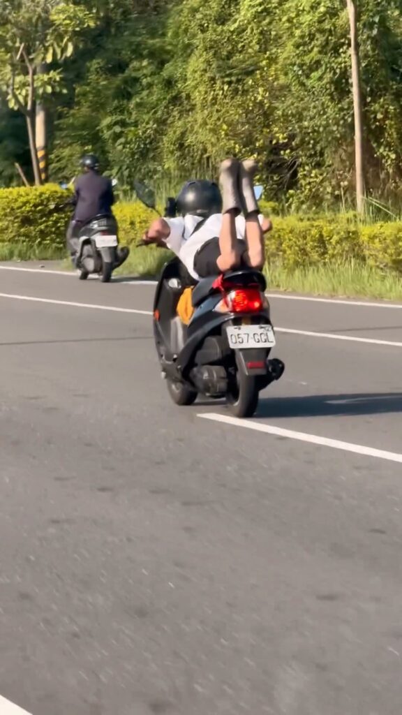 網友在Threads發文指出,9日早上7點50多,在嘉義水上中山路二段看到一名騎士趴著騎車,「一早上班遇到飛人,精神都來了」。