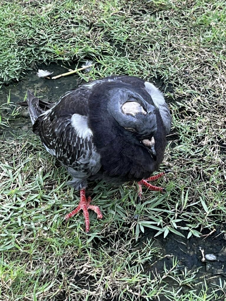 遭虐的鴿子頭頂禿了一大塊。社團法人台灣鳥類救援協會提供