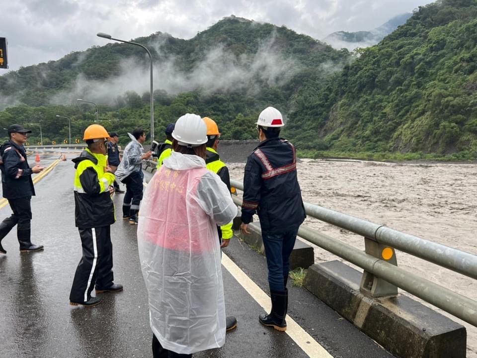 台20線被土石流沖刷導致傾斜的明霸克露橋鋼便橋目前持續實施道路封閉,甲仙工務段表示,預計12日17時以搶通溪底便道開放通行。