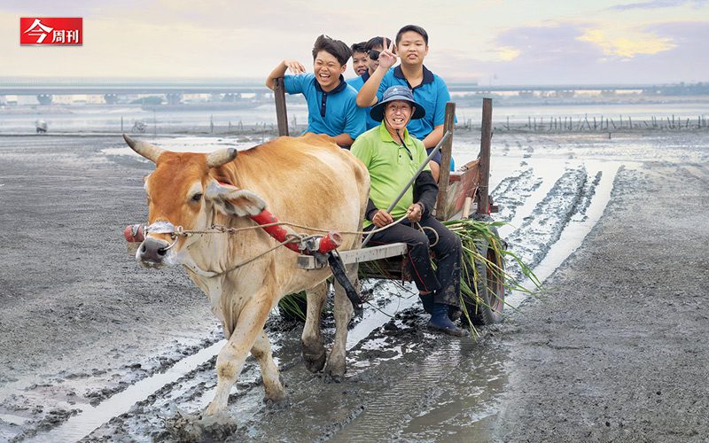 半小時的路程,大夥兒來到有「黑色大地」之稱的芳苑潮間帶,這裡是台灣具代表性的養蚵重鎮,且保有百年的「海牛採蚵」特色文化,當地的黃牛「半農半漁」,不只幫忙犁田,也會下海協助採蚵、運蚵,形成獨有的農漁村面貌。