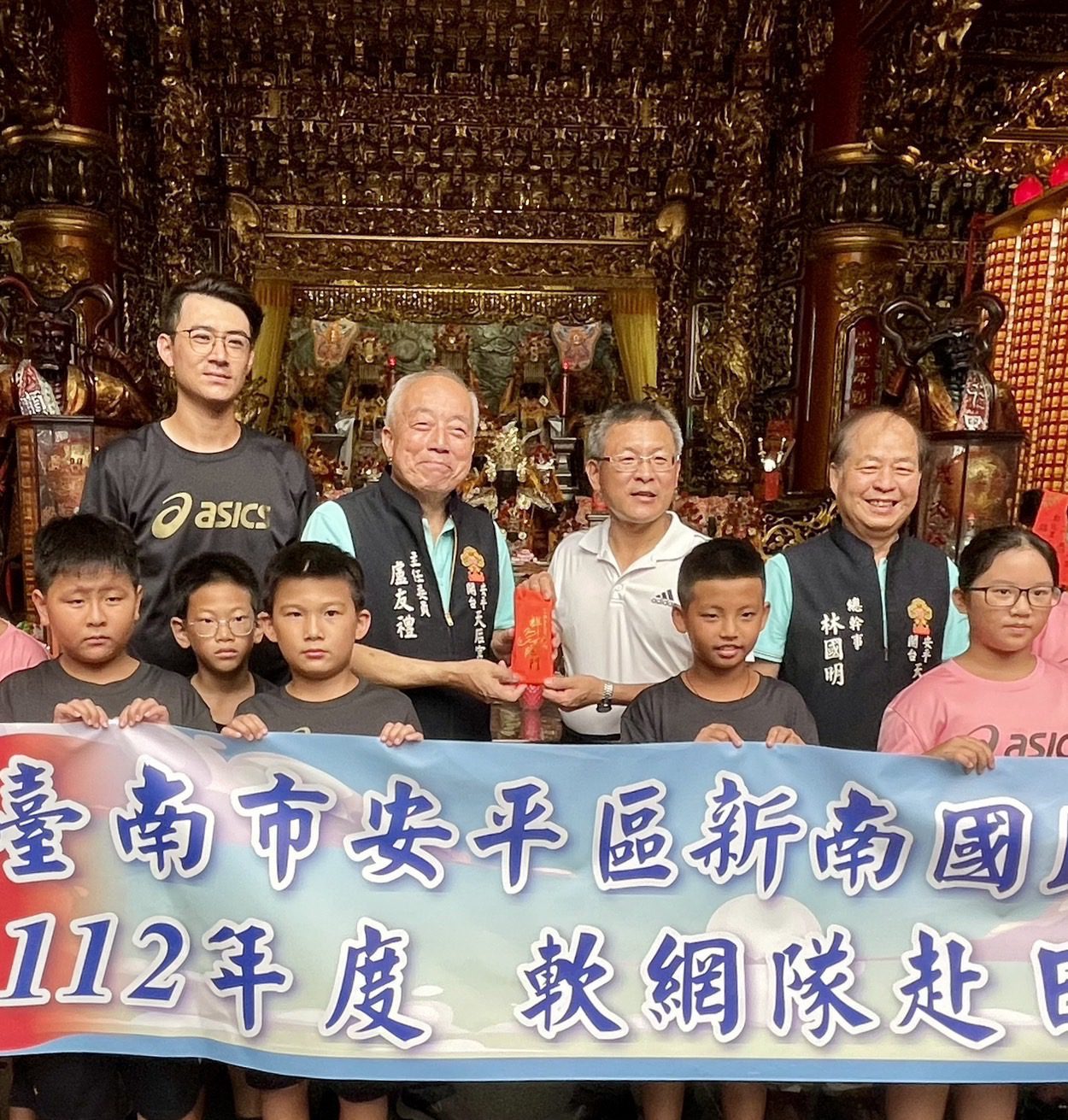▲台南安平開台天后宮熱心支持新南國小軟網隊,再度前進日本山中湖為國爭光。(蔡清欽攝)