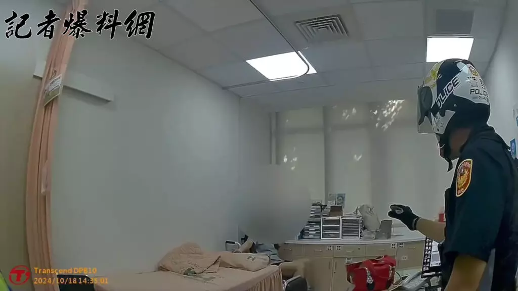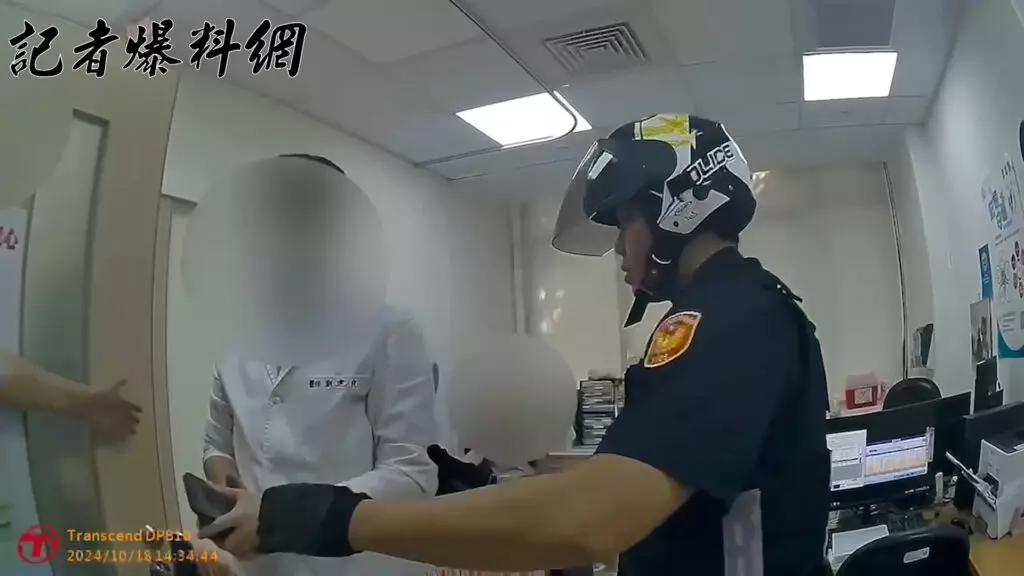▲▼警方先行讓護理師及醫生安全撤離診間後,持續與林女對話安撫情緒。(翻攝畫面)
