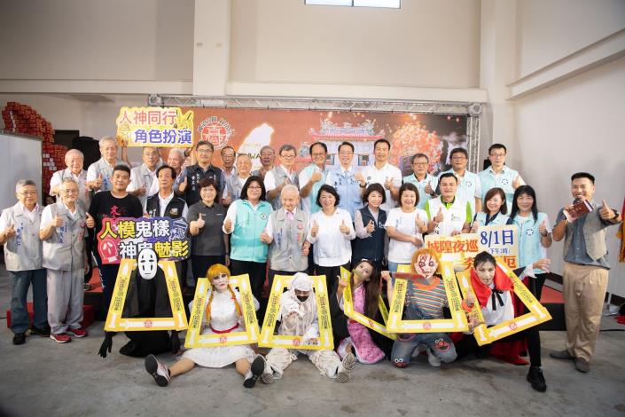 嘉義市城隍廟的「城隍夜巡諸羅城」是歷史悠久且名揚國際的宗教盛事,每年吸引各年齡層民眾來嘉感受宗教魅力,近年與國際接軌,更成為台灣宗教觀光必訪行程。今(10)日上午,城隍廟為農曆八月初一(9/15)即將到來的城隍夜巡熱身暖場,於廟埕舉辦盛大「嘉義城隍夜巡」記者會,會中穿插火焰舞團、阮劇團的經典劇碼演出,以融入夜巡特色的歌舞預告今年城隍夜巡將融入更多藝術活力,市長黃敏惠與立委、多位議員及貴賓一同來到城隍廟參香祈福、參與記者會,並邀請全國民眾一同來嘉參與宗教盛典。