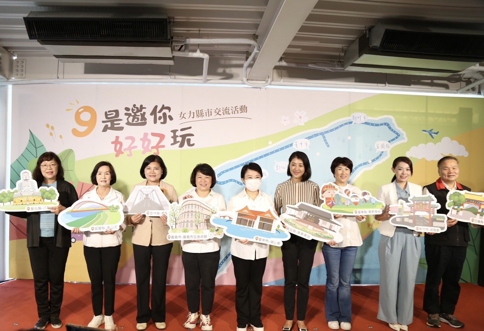女力縣市首長攜手響應聯合國SDGs性平9大指標也拼觀光!今(11)日,嘉義市長黃敏惠受臺中市長盧秀燕邀請,與雲林縣、彰化縣、南投縣、新竹市、宜蘭縣、花蓮縣及臺東縣共九位女性縣市首長與代表齊聚台中「帝國製糖廠臺中營業所」,以行動為女性權益及性別平等發聲,也聯袂拼觀光,為各縣市在地旅遊行銷,不僅為疫後觀光產業復甦注入新的動力,也以女性剛柔並濟的韌性,為社會與經濟帶來更多元的影響。