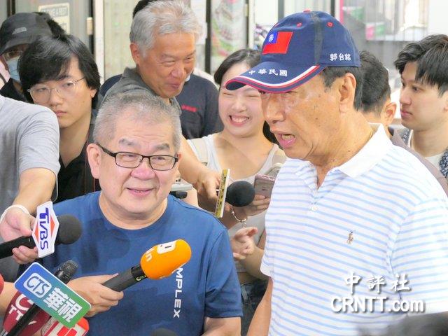 郭台銘今日上午至台北市“南門中繼市場”與攤商互動,南門市場自治會長王銓國出面接待。
