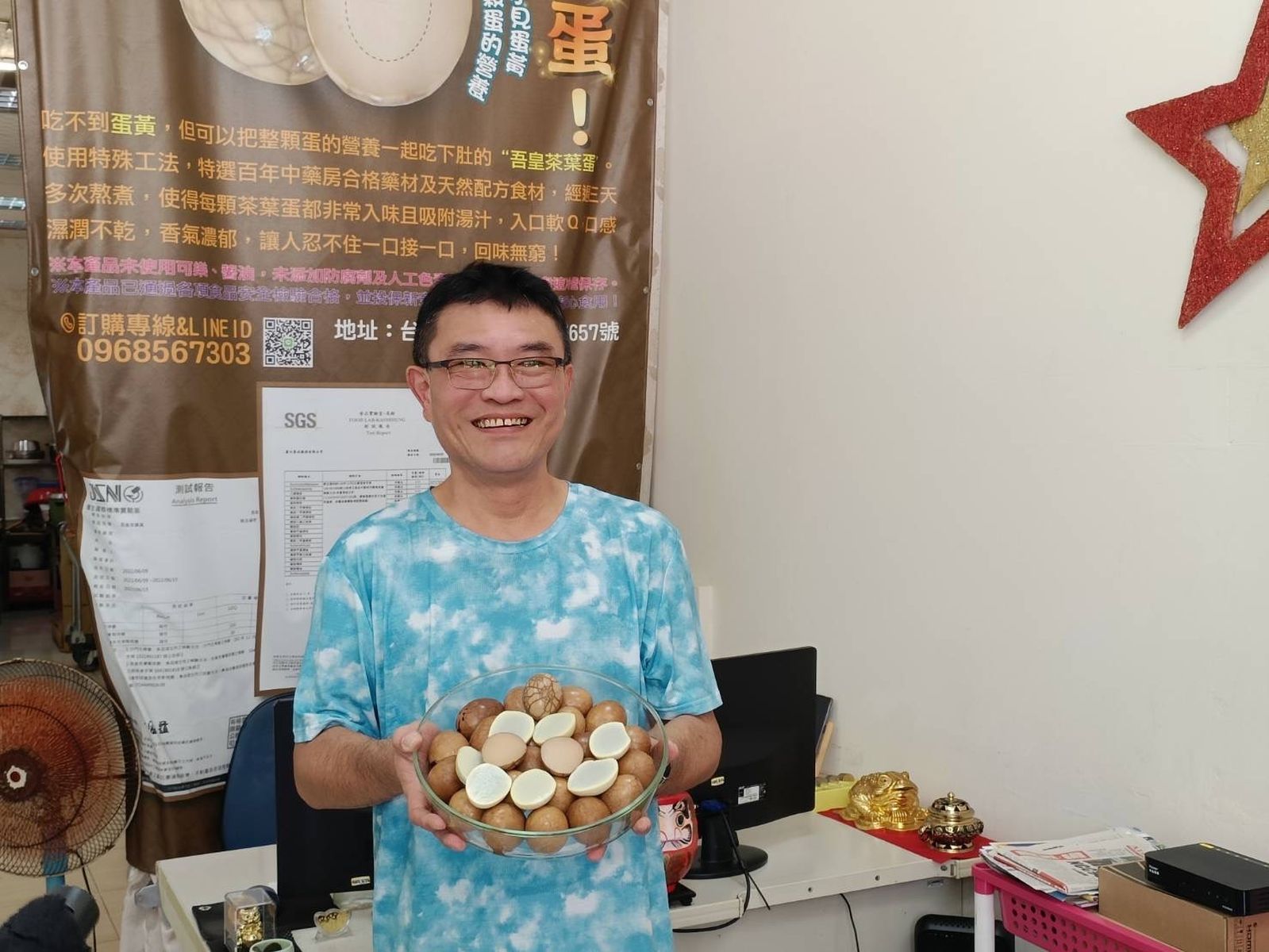 吾皇茶葉蛋是將蛋白與蛋黃混合成一體,看不到蛋黃確能吃到蛋黃的營養而獲得「混和蛋」結構的新型專利。負責人陳建燁說,這項專利不藏私,有意要開班授課,讓其家庭化。