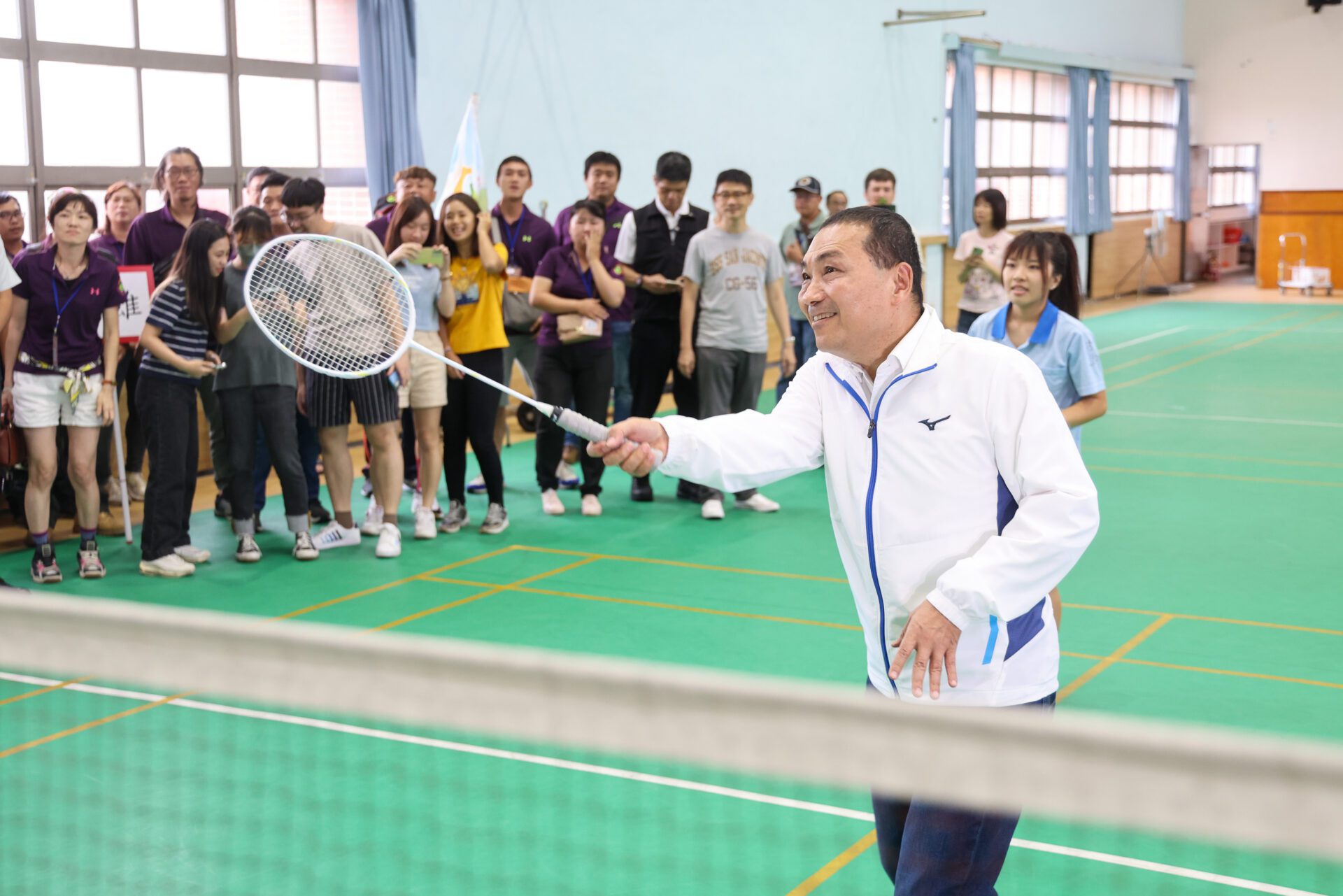 新北市長侯友宜今(16)日出席「112年跨縣市青農聯誼會羽球交流賽」,與各縣市參賽的青農朋友互動交流,並擔任開球嘉賓,與青農朋友切磋球技,鼓勵青農朋友於農忙之餘也要動健康,保持健康的身體,才能為消費者提供健康的農產品。