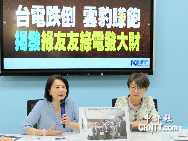 王鴻薇表示,民進黨在發展再生能源過程當中,裡面有多少暴利,現在看到前綠委賴勁麟曾經是擁有19家能源公司董事長,除此之外,還有多少是跟民進黨關係深厚、有淵源的綠友友們。國民黨團會一一追蹤下去,讓民眾看清楚,民進黨死守非核家園的背後,除了給台灣帶來缺電,電價可能會大幅上漲的惡果,讓與民進黨政商關係雄厚的人,如何賺到飽,台電如何虧到爆。