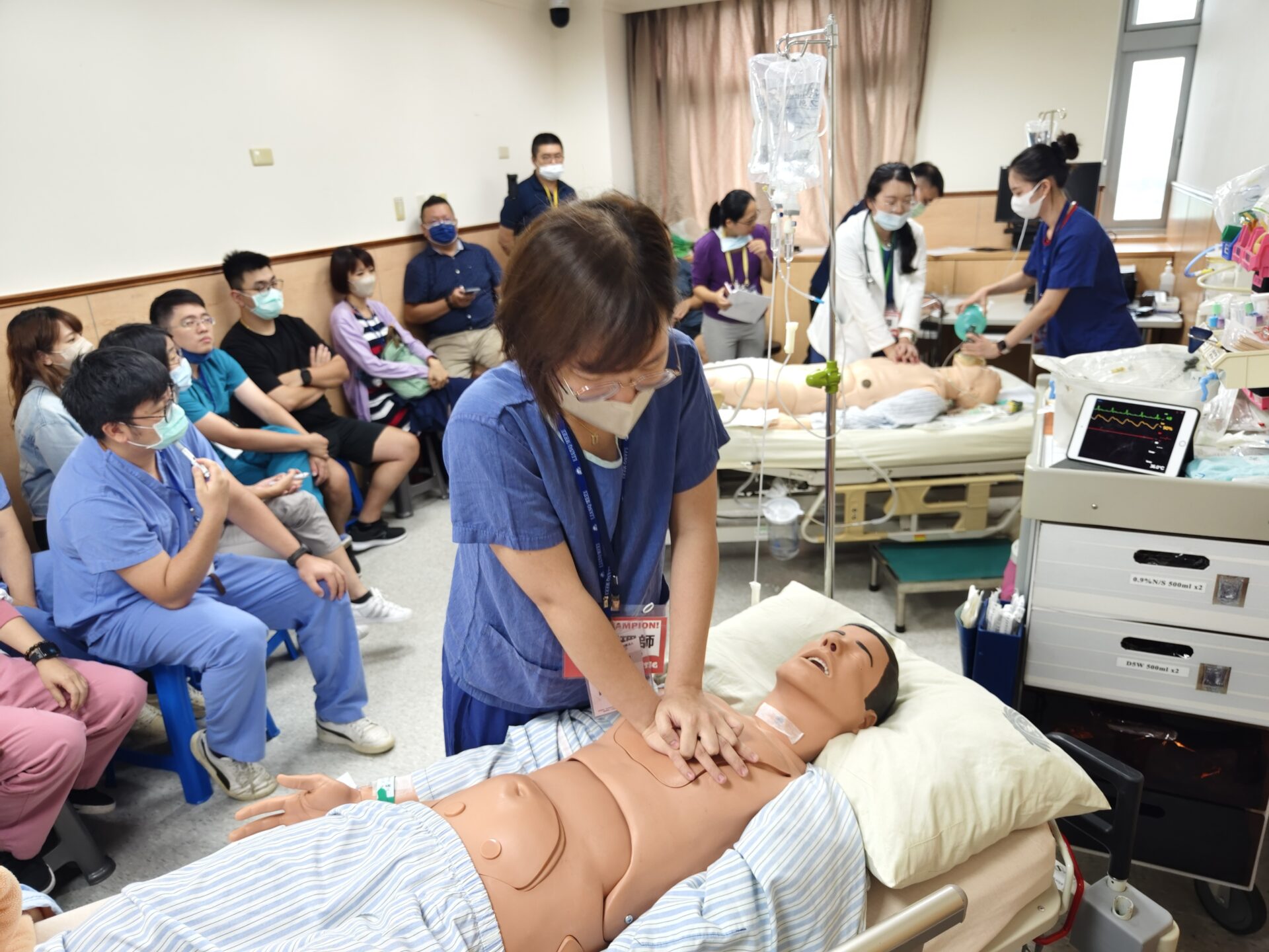 技術主任黃雪莉指出,「新人組」就是從學校畢業到臨床來工作兩年稱為PGY,「急重症照護組」的組成包括醫師然後住院醫師、總醫師,還有護理人員、專科護理師,都非常踴躍,透過這次演練的跟比賽的過程,能提升臨床技能,回到臨床時,照顧率技能都「up、up」提升,其實對民眾是好的。