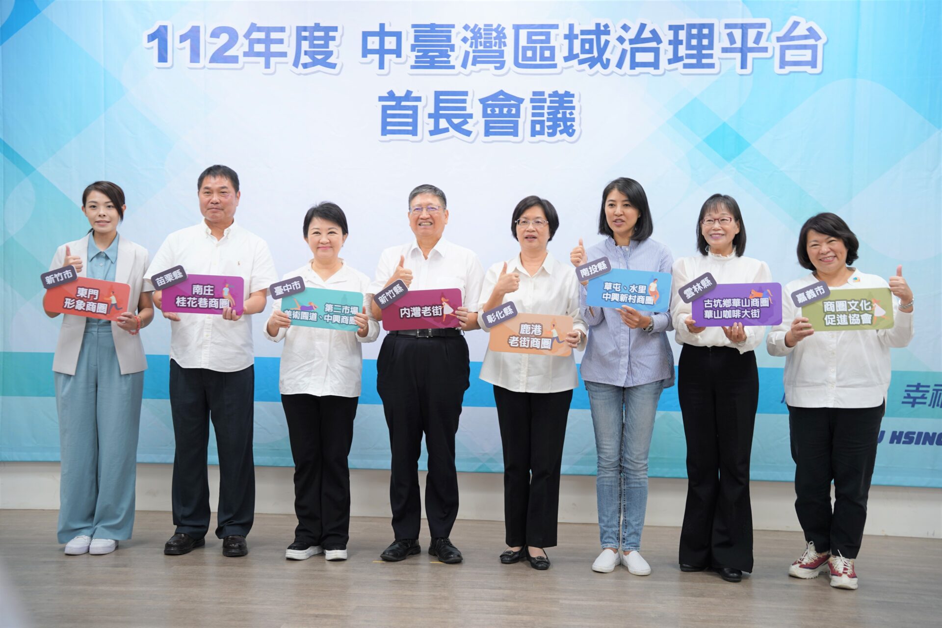本次首長會議,中臺灣八縣市首長共同宣誓,將跨縣市共同推廣「八縣市在地老街、商圈特產」,串聯中臺灣觀光亮點,展現中臺灣老街的獨特魅力。同時,會場外也展示各縣市的老街、商圈及特產,一同為促進中臺灣各縣市老街商圈的發展與繁榮而努力。楊文科也表示,新竹縣將在9月9日至10日於竹北市舉辦「秋遊星夜季」活動,並邀請中臺灣八縣市的在地老街與商圈店家共襄盛舉、參與擺攤,讓民眾一次購足中臺灣八縣市特色商品。
