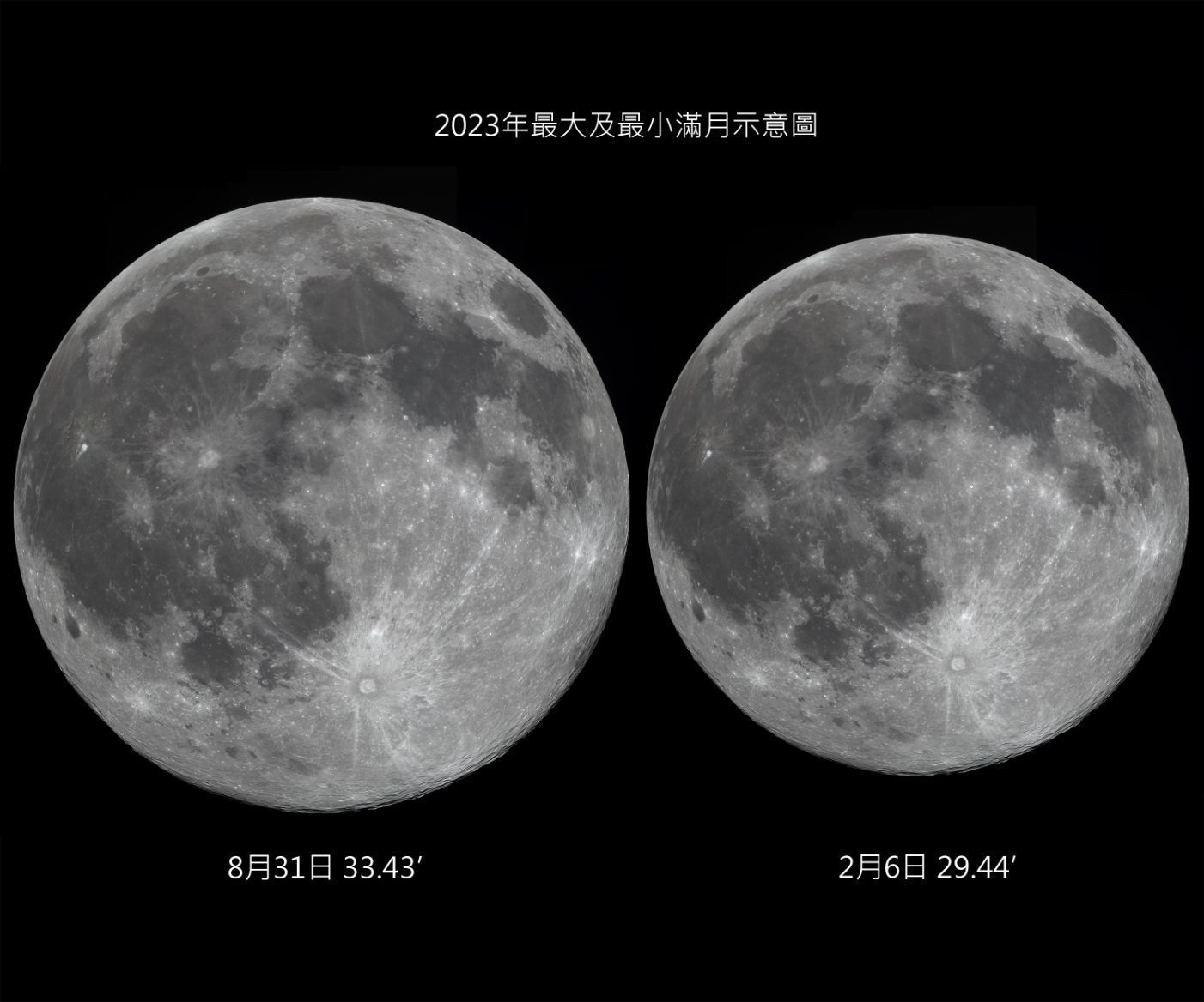 教育局鄭新輝局長指出,8月31日登場、由2個特殊天象所組成的「超級藍月」在今年格外受到矚目,月球繞行地球公轉的軌道為橢圓形,因此月球與地球的距離時遠時近,約在36萬至40萬公里之間變化,如果滿月時恰逢近地點,此時月球就會看起來比較大、比較亮,故俗稱「超級滿月」。今年最大滿月距離地球只有357,341公里,視直徑為33.43角分,比最小滿月29.44角分大了10%左右,很容易看出差距;而「藍月」則是指當一個月中出現第二次滿月,因為兩次滿月的間隔為29.5天,若該月份為30或31天就有可能在當月的頭尾各出現滿月,英文俗語「Once in a blue moon」即是隱喻不常發生的稀有事件,而不是月球真的看起來變藍色。