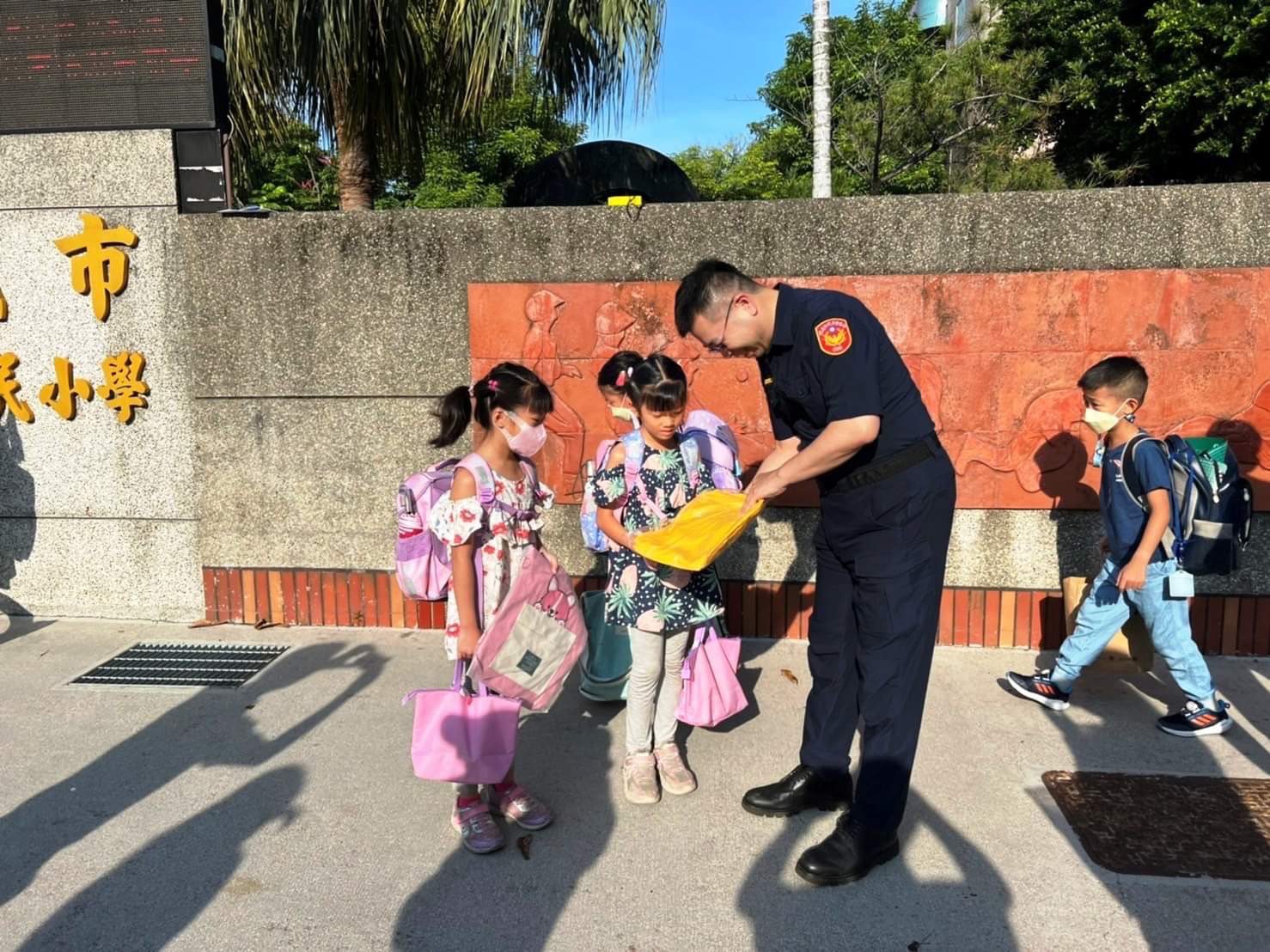 8月30日為國小學開學日,第一分局執行加強校園安全維護作為,由分局長林詔徹親自率員執勤,各派出所派員於本轄各國小上學時段於交通繁雜路口執行護童勤務作為,並防止開學首日因家長接送而造成校門口交通壅塞。另運用此時機向家長及學童宣導推廣YOUTUBE婦幼抱抱頻道,宣導兒童保護觀念,鼓勵學生訂閱下載運用內政部警政署「婦幼抱抱」(NPA Care U)Youtube宣導平臺婦幼安全影片,共同守護婦幼安全。