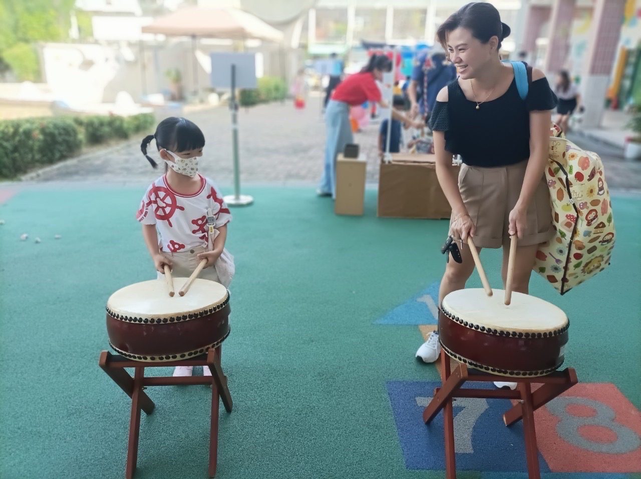 開學的校園充滿歡樂溫馨的氣氛,孩子們勇敢自信地通過『鳥居』,象徵連接幼兒園與家庭的通道,家園同心親師一起合作。緊接著是『祈福鈴+賽錢箱』,意味著新的開始,與孩子一起許下新學期的願望;還有打『太鼓』敲響美好學習之路,以及『繪馬祈福』祈福未來一整年順順利利。