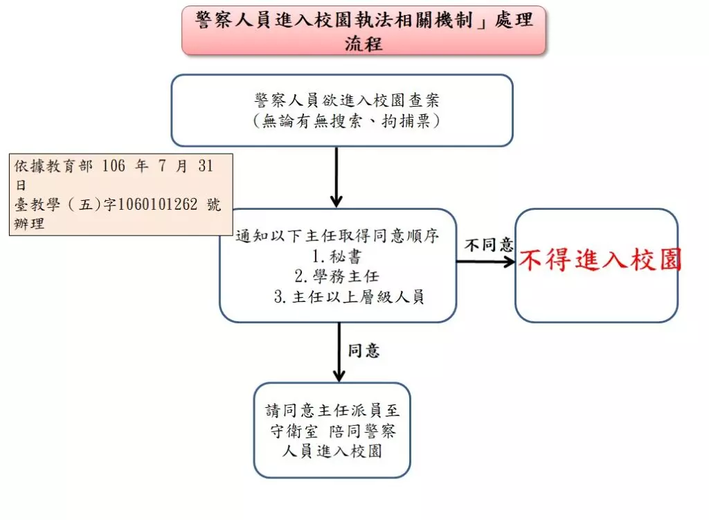 台中市警一分局表示,3月27日該分局受理忠信國小報案稱校園有老師跟學生糾紛,員警進入校園協同學生返所釐清緣由,執法程序未臻周延,致觀感不佳,已查明疏失並處分,該分局持續加強宣導同仁,進入校園處理案件應恪遵內政部警政署函頒「 警察人員進入校園執法相關機制」規定及流程,以確保校園自治權利及安全。