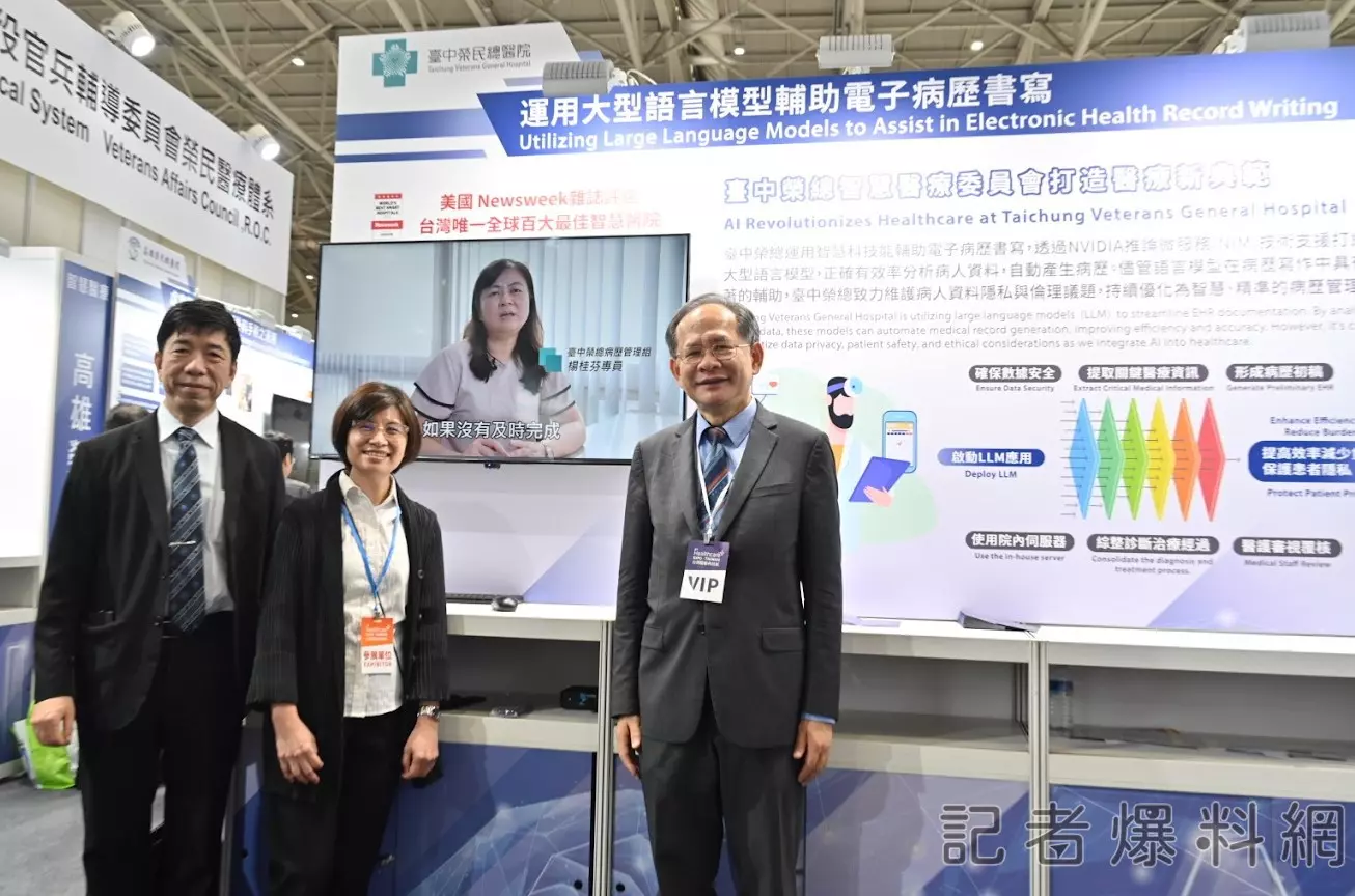 【記者爆料網 蔡智銘/台中報導】2024臺灣醫療科技展12月5日至8日在南港展覽館登場,臺中榮總以「醫療與科技的結合,從臺灣邁向全球」為主題,展現智慧醫療、尖端醫療、精準醫療、再生醫療及遠距醫療的具體實踐。亮點包括攜手輝達(NVIDIA)合作之「自動語音辨識於醫療諮詢專線的應用」、「大型語言模型輔助電子病歷書寫」,與鴻海合作「數位孿生與AI技術在乳癌治療中的創新應用」,以及「AI腎臟超音波快速精準診斷」、「職業性肌肉骨骼傷害手機APP檢測系統」。同時展示心導管技術治療高危險冠狀動脈疾病、3D脈衝式消融治療心律不整等尖端技術,與基因研究及細胞癌症治療之成果。