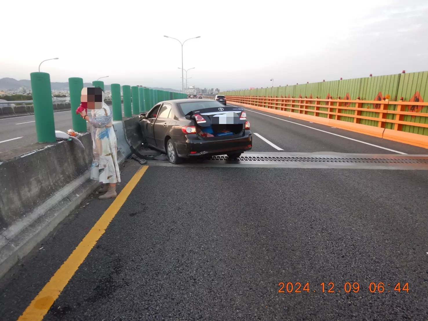 女子駕車行經台74線大里路自撞分隔島,並在車邊跳舞吸引許多路過民眾目光。