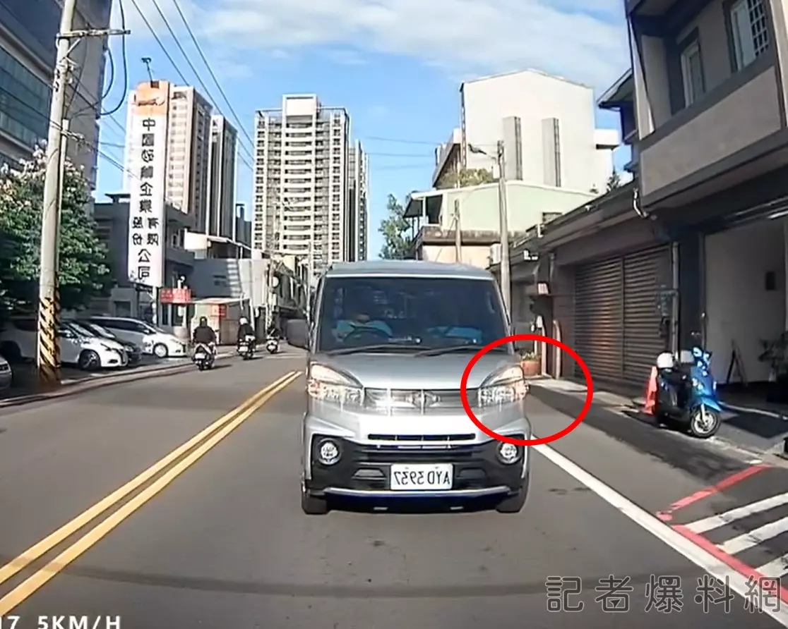 從曝光的影片中能看到,銀色自小客車,並不是「說彎才打燈」,而且提早打了方向燈,就在事發路左轉之際,後方一部機車騎過來擦撞到自小客,人車摔倒在地。
