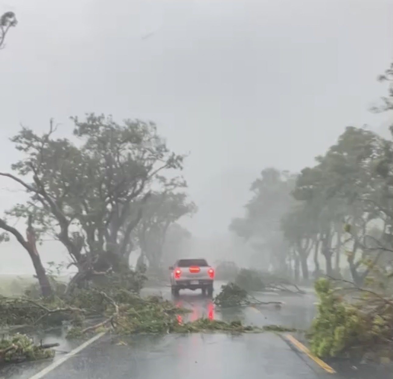 海葵登陸後,台東縣東河鄉受到強烈風雨襲擊,道路上幾乎都是被吹倒的樹木,汽機車難以通行。