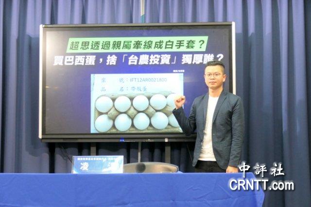 國民黨智庫國家政策基金會副執行長、桃園市議員凌濤今日上午在國民黨中央舉行“超思透過親屬牽線成白手套? 買巴西蛋,捨‘台農投資’獨厚誰?”記者會。