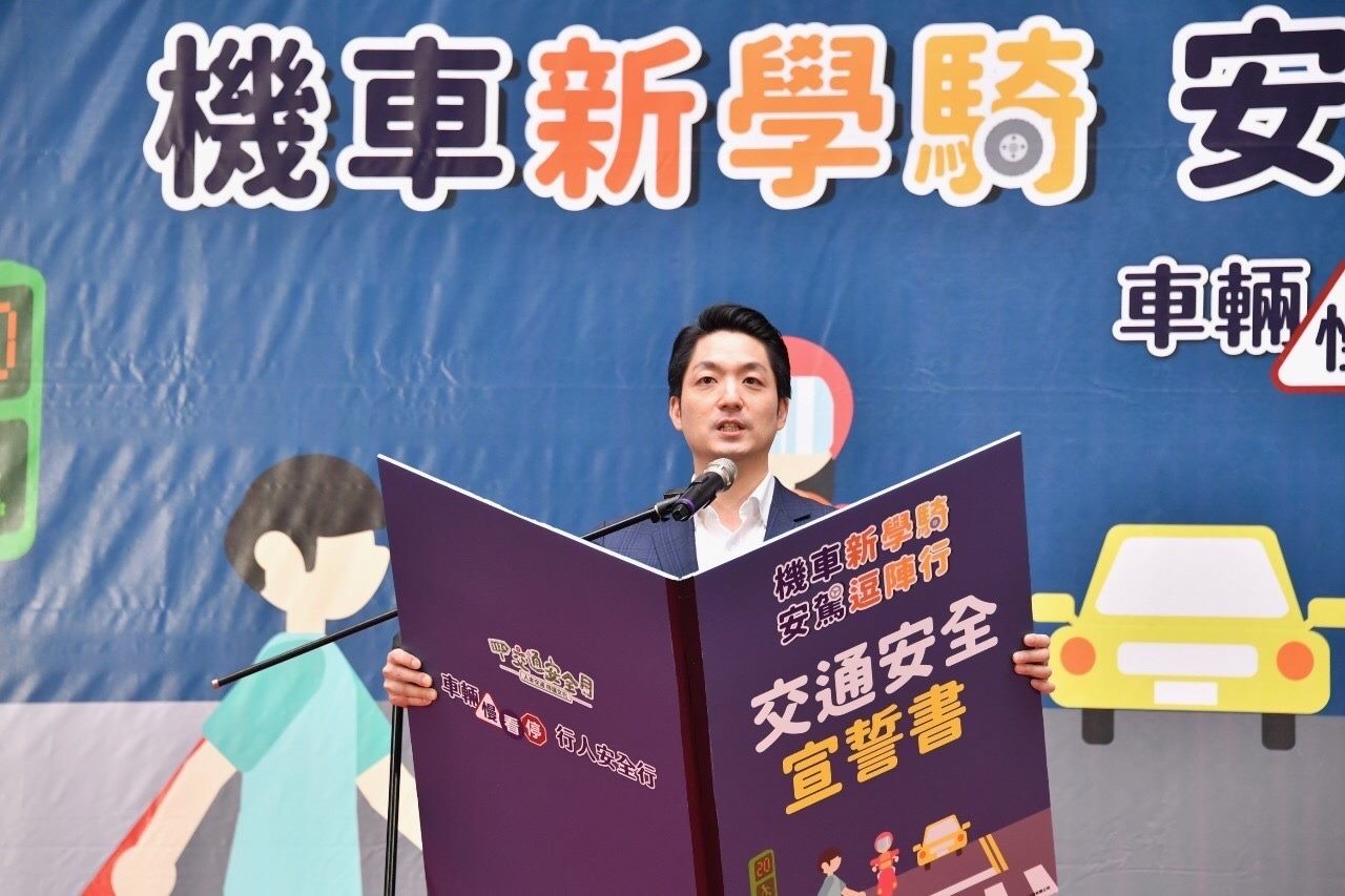 此外蔣萬安也希望藉由交通安全月的機會,來特別宣導機車駕駛的安全,在臺北市,透過相關的數據可以發現機車的交通事故佔比非常高,高達77.6%都是機車騎乘發生的事故,所以要針對這樣的痛點來解決。