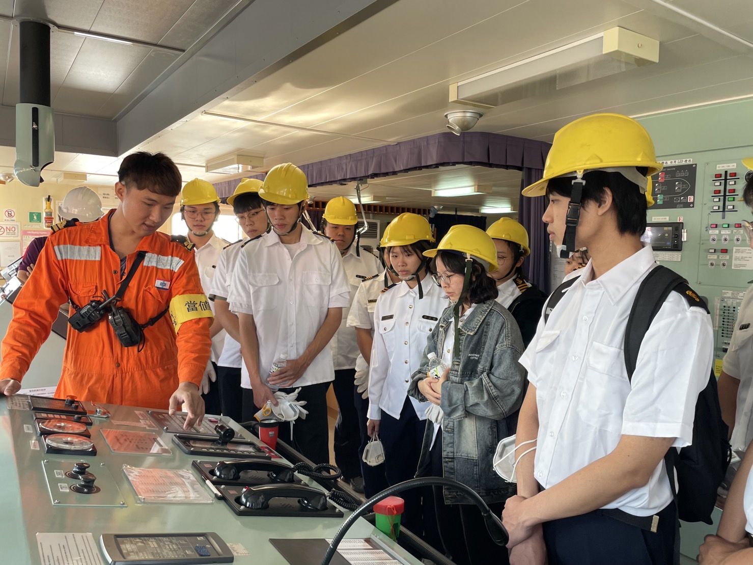下午,參訪團前往停泊於高雄港98號碼頭的中鋼成功輪參觀,受到船長、輪機長及船員們熱情接待。這艘長300米、寬50米的20萬噸級海岬型散裝船,配備節能主機與先進數位航儀。除了由輪機長介紹船舶機械及電機設備的操作維護外,一位已晉升為二副的高科大航技系學長也為學弟妹們講解航行操控台的數位儀器應用。同學們實地了解到海上與岸上工作的顯著差異,對船舶的優質工作環境及先進設備留下深刻印象。