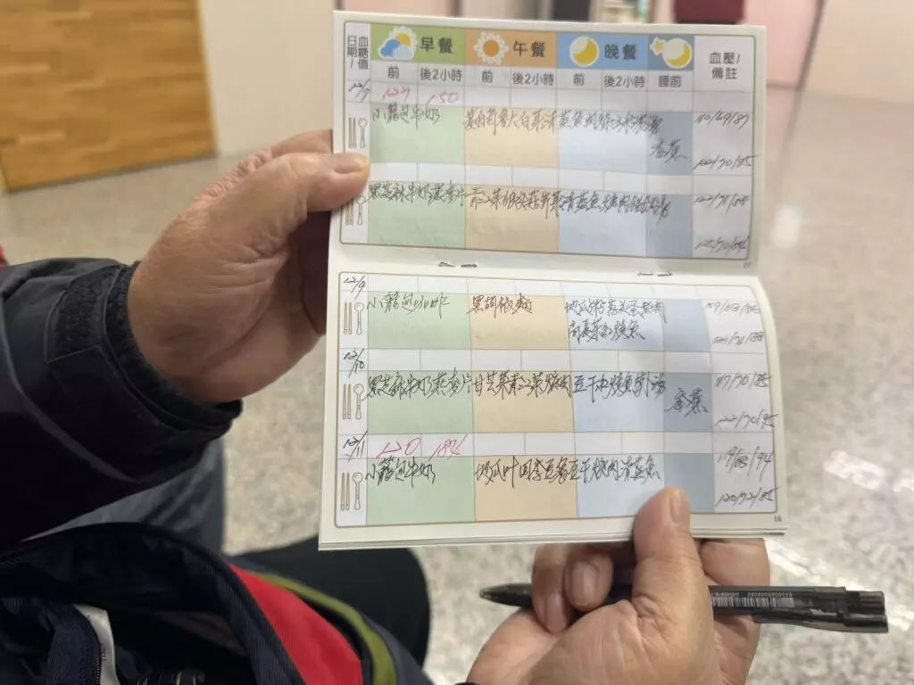 劉姓男子透露,每次回診時,醫師、護理師都會問他吃了什麼,但是他記憶不好,因此,聽從護理師建議,用簿子記錄下每天自己的飲食、食量、血壓及血糖,10多年來幾乎沒有中斷過,已經寫了近40本飲食紀錄表,每次回診拿本子給醫師看,再逐漸調整飲食、用藥,不只體重甩了20公斤,血糖、血壓都在正常值內,「我隨時提醒自己,嘴巴要堅持住,不要貪吃!」