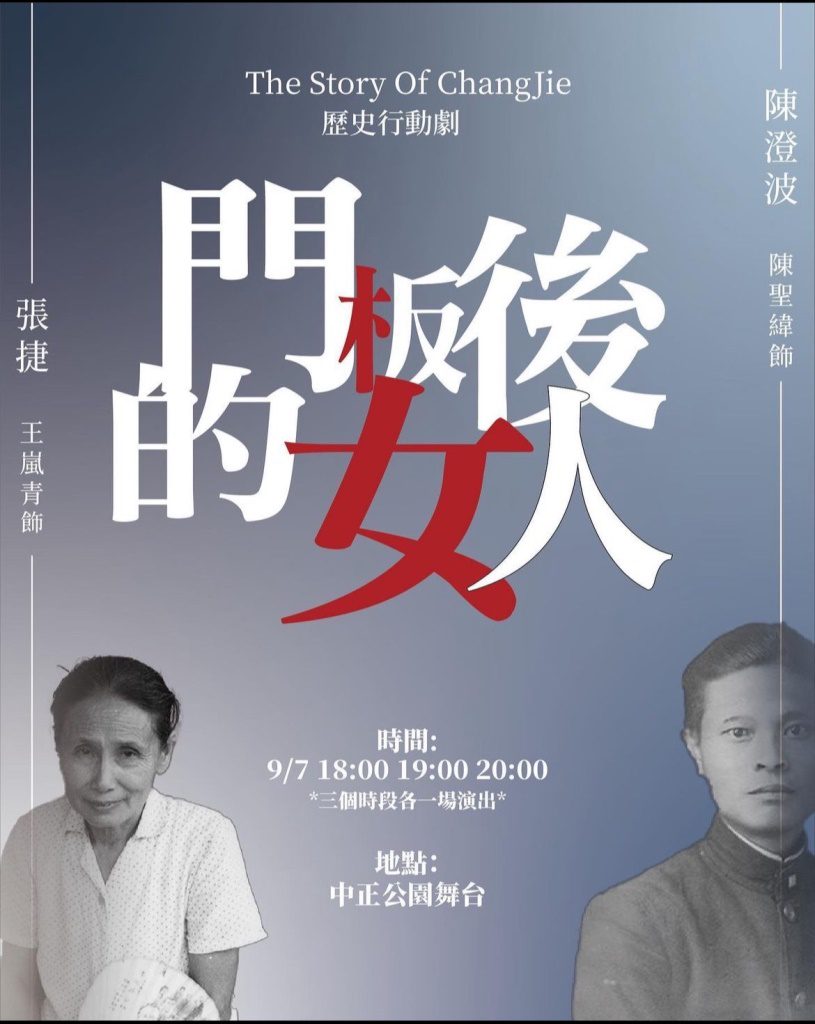 「平凡人的不凡勇氣」團隊:9/7(四)18:00、19:00、20:00三時段於中正公園舞台演出歷史行動劇。