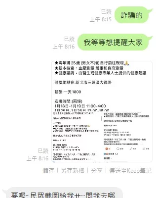 【賴傳媒 蔡智銘/台中報導】下個月就是農曆過年,不少單位會找臨時工,但是小心詐騙!最近全台各大臉書社團出現「健康體檢、醫護人員」的徵才廣告,工作內容是工作內容是協助健檢、幫忙量測體重、身高等,註明活動由醫療財團法人接洽舉行,一天工作5個小時,薪資一千八,有民眾截圖私訊醫院員工,要找誰報名,李綜合醫療社團法人李綜合醫院提醒,有可能是詐騙,要民眾小心。