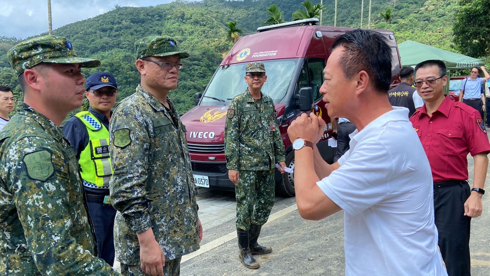 此外,竹崎鄉昨夜發生土石沖進治喪民宅屋中,導致待出殯大體淹沒在土石中,於午間尋獲,翁章梁也特別到現場關心慰問,感謝在軍警消通力合作下,順利找到大體,也讓家屬能安心。