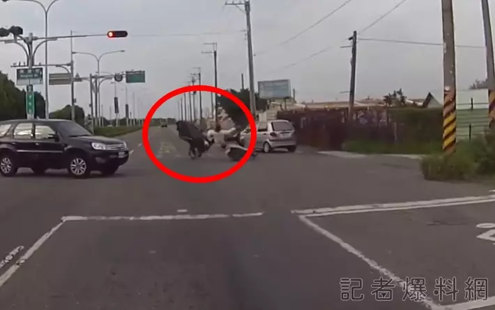 台南西濱快速道路機車闖紅燈釀禍 雙載騎士撞機車摔車.(圖片翻攝)