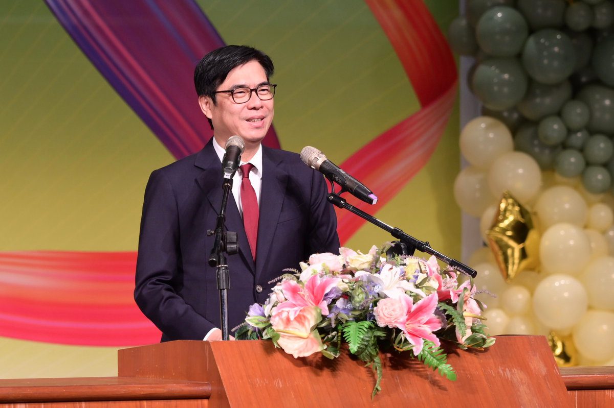 陳其邁表示,所謂「十年樹木百年樹人」,各位老師可以說是將一生奉獻給教育,每一位都是教育界最重要的資產,並感謝老師對課程的用心,高雄市才能夠培養那麼多的優秀子弟,成為國家未來棟樑。今年更有兩位老師獲得教育部師鐸獎的最高榮耀,他對此特別表達敬意與感謝。