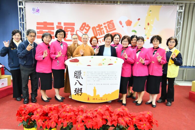 王惠美說,臘八粥的由來為紀念佛陀成道日來感恩牧羊女乳糜的幫忙,才能夠在菩提樹下頓悟成道,臘八粥素有「粥中之王」之美譽。特別感謝佛光山彰化福山寺再度準備1,600份臘八粥贈予縣府同仁同霑法喜並廣結善緣,感謝師兄師姐們一大早用心準備,希望縣府同仁在品味美味臘八粥的同時,能感受滿心的溫暖與法喜,繼續為縣民提供更優質、更有活力的服務。